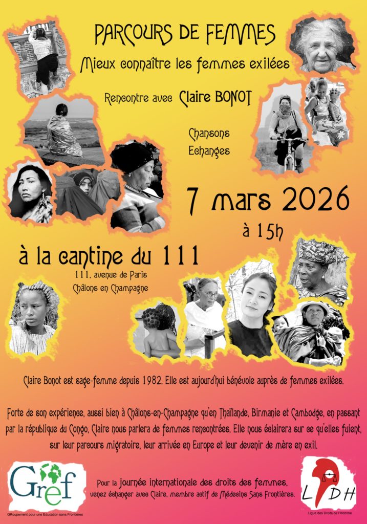 Évènements le 7 mars 2026 Recherche et navigation de vues Évènements Afficher la recherche Évènements Rechercher Évènements Jour du Recherche Navigation de vues Évènement Options d’affichage ListeMoisJour « Jour précédent 15 h 00 min Parcours de femmes avec la LDH mars 7 @ 15 h 00 min - 19 h 00 min LA CANTINE 111 avenue de paris chalons en champagne, Marne 51000 France + Google Map Voir les détails » + Exporter les évènements